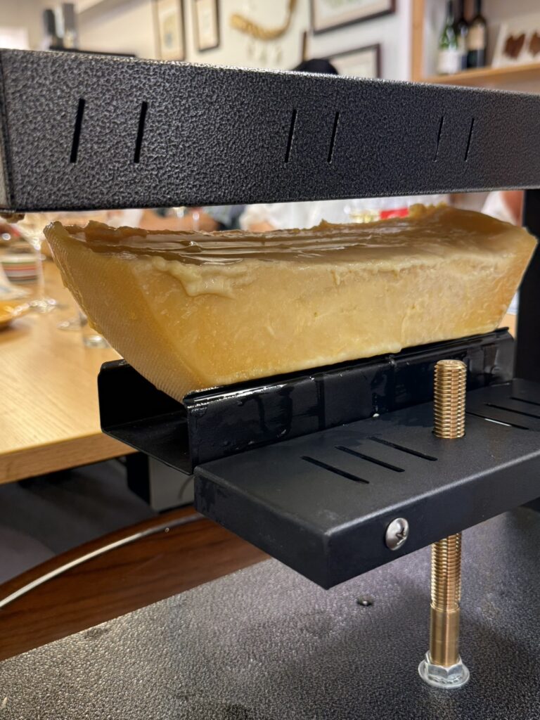 専用の機械でとろ〜りと溶かしたラクレットと、香り豊かなスイスワインの組み合わせはまさに最高❣️