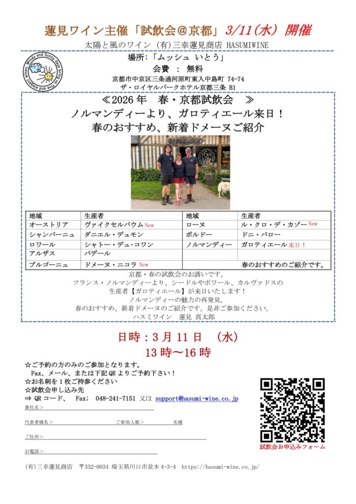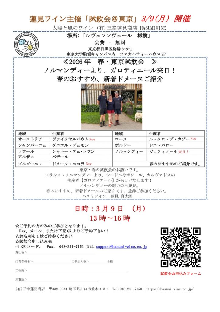蓮見ワイン、春の試飲会のお誘いです。